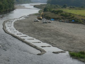 北川町の建設業組合の方々の協力で、5m×5mの池を20面作り、つかみ獲り・チョン掛け用の池2面を河川120mの中に作成していただき、魚釣り大会を行いました。