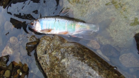 堀切:鮎の群れ・カマツカ・ウグイ・シラハエ・オイカワ・ナマズ・ボウズハゼ・チチブ・シマヨシノボリ。特にウグイ・オイカワが多くいました。
